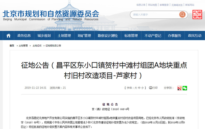 现在规划来啦!近日,北京市规划和自然资源委员会连发征地公告!咱昌平5个村庄即将改造,快来看看有没有你们村吧!