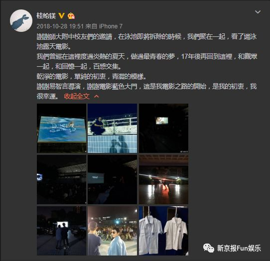 那天晚上桂纶镁在微博上写:“我们曾经在这里度过炎热的夏天,做过最青春的梦,17年后再回到这里,和观众一起,和回忆一起,百感交集。干净的电影,单纯的初衷,青涩的模样。”