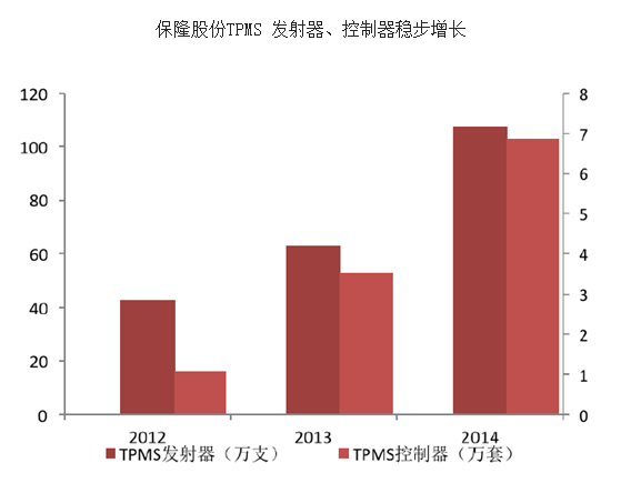 虽然国内TPMS 厂家有多达50 多家,但绝大多数只是不具备生产能力的组装厂商,国内具备批量化生产能力的TPMS 供应商仅有保隆股份、驶安特、云意电气、铁将军等。按照汽车零配件行业的发展状况,这些具备产品开发能力和规模化量产能力的企业有望迅速占据自主品牌市场,并向合资品牌市场渗透,逐渐扩大在自主品牌和合资品牌中的占有率。