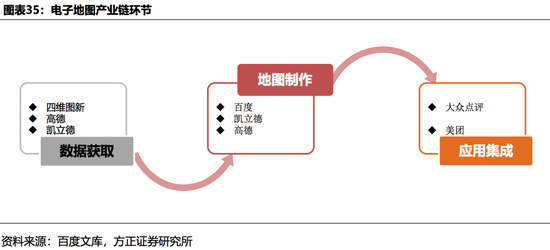导航电子地图的产业链主要分为三个环节:数据获取、地图制作、应用集成。数据获取是整个电子地图的核心环节。