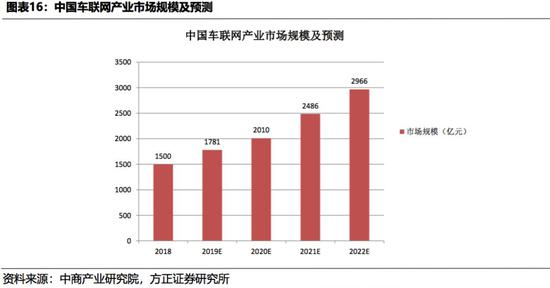 5G标准化第一阶段已经完成,进入产业全面冲刺新阶段: 2017年12月完成非独立组网(NSA)架构的5G Release15早期版本;2018年7月,5G NR独立组网(SA)功能在3GPP第80次TSG RAN全会上正式冻结。2019年,开展5G-V2X Uu技术试验。技术进步拓展车联网应用场景,助力车联网市场快速发展。根据中商产业研究院发布的《2019年中国车联网产业园发展前景及投资研究报告》, 2018年我国车联网市场规模为1500亿元,预计2022年将近3000亿元。