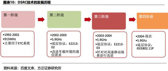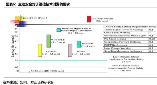 专用短程通信技术(Dedicated Short Range Communications ,DSRC) 是基于WiFi演进的技术,它利用IEEE 802.11p,在车载环境(WAVE)中添加无线接入 ,允许车辆之间以及车辆和路边基础设施之间的低延迟通信。现阶段其延时已能够满足主动安全所需要20ms以内的延时需求。