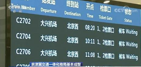 今年,随着大兴国际机场、京雄城际铁路北京段开通运营,京张高铁开始试运行,一张覆盖三地所有地级以上城市的综合立体交通网初步建成,京津冀交通一体化格局基本成型。
