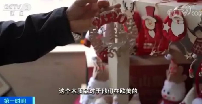 浙江省东阳市某圣诞工艺品有限公司总经理 杨宜斌:这个木质品对于他们在欧美的,非常愿意接受,因为第一环保,第二价格低廉。我们货过去了,他们接受度非常大。