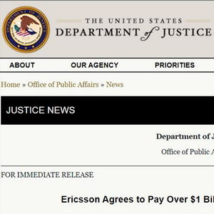 美国纽约南区的检察官杰弗里·伯曼在一份声明中说:“爱立信通过行贿、受贿、馈赠和贪污,以‘金钱万能’的指导原则开展电信业务。”