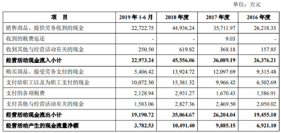 同期,光云科技销售商品、提供劳务收到的现金分别为2.62亿元、3.57亿元、4.49亿元、2.27亿元。经营活动产生的现金流量净额分别为6921.10万元、9885.15万元、10491.40万元、3782.53万元。