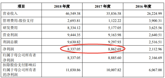 在6月11日披露的招股书(申报稿)中,光云科技2017年、2018年净利润分别为8862.69万元、8337.05万元。