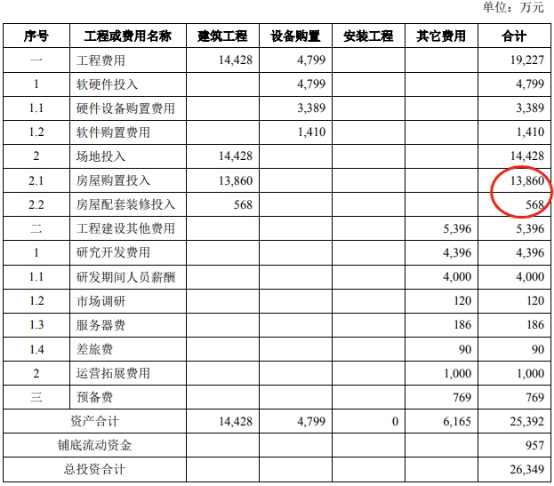 其中,“光云系列产品优化升级项目”中,1.39亿元用于购置位于杭州市滨江区江南大道588号恒鑫大厦主楼内的6600平方米房产,568万元用于房屋配套装修投入。
