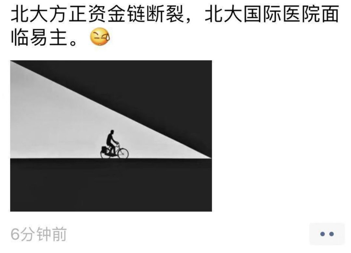 12月3日晚上,朋友圈突然出现一个消息:“北大方正资金链断裂,北大国际医院面临易主”。