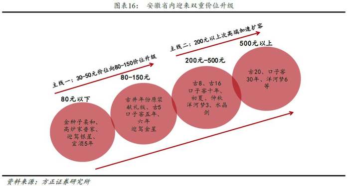 从价位上看,03-13年百元价位的崛起带动区域龙头公司进入高速成长期;16年之后,以古井、洋河、口子窖等为代表的公司已进入次高端价位驱动增长阶段,区域龙头的价位布局更全面,市场运作上兼具防御性和进攻性,因此未来公司经营的周期性波动将明显减弱,随着省内主流价格带的提升,龙头公司将继续受益,强者恒强。