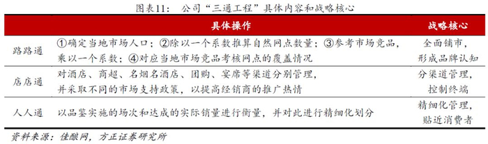 渠道模式上,古井启动“三通工程”,采取以厂家为主导的“嵌入式管理”进行深度营销和精细化运作,厂家直接与终端和消费者沟通,公司主导市场的能力较强。营销模式方面,公司改变过去由经销商主导的市场运作为厂家主导的市场运作,强调以厂家为主导的“嵌入式管理”模式,经销商的职能被弱化为物流、垫资、客户服务,核心运作市场的力量主要来自厂家,公司掌控市场的运作,公司的组织队伍开始以终端销售和核心消费者推广为重点,通过组织模式的定向运作,在酒店、团购以及流通渠道进行系统运作,组织导向带动市场导向。同时,厂家在资源上的主导地位,公司对市场的控制力加强,可以从根本上着眼于市场的长期稳健发展,对市场的竞争和变化可以灵活机动的投入。