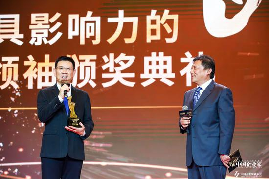 新浪财经讯 “中国最具影响力的25位企业领袖颁奖典礼”今日在北京举行。武汉高德红外股份有限公司董事长黄立(左)获此殊荣,经济日报副总编辑郑波为其颁奖。