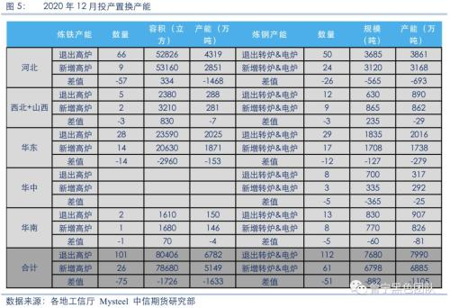 整理各地工信厅的产能置换公告可以看出,大量置换产能在2018年至2019年处于集中建设期,在2020年至2021年,将进入置换产能的投产高峰。根据我们的不完全统计,2020年将是新置换产能的投产大年,主要时间节点有两个,一个是6月左右,一个在12月。6月左右主要投产产能集中在河北省,而12月投产产能则遍布全国各个区域,具体变动情况如下表所示。