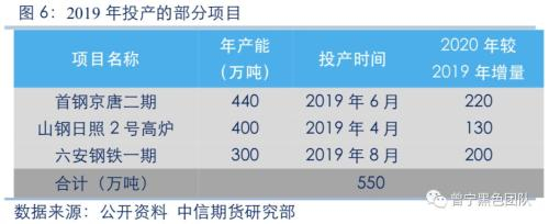 2019年有部分新项目投产,如首钢京唐二期、山钢日照2号高炉、六安钢铁一期等。由于投产时间为2019年4月至年底不等,而被置换的产能是在2017年至2019年退出,新设备2020年全年生产后,将比2019年实际产能有所增长,具体情况如下表所示: