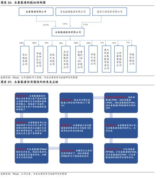 公司激进扩张的同时,债务负担也在不断积累。2015-2017年的3年期间,公司总资产迅速增长了1倍,从521亿元增长到1072亿元,债务负担不断积累,资产负债率始终维持在70%以上的高位,且以流动负债为主,2017年末公司流动负债占比高达78.21%,短期偿债压力高企。与此同时,公司盈利能力也在不断恶化,最终在去杠杆、融资环境收紧的大环境中“倒下”。2018年7月5日,永泰能源出现首只违约债券,并触发了“交叉违约条款”,进一步加剧了公司的短期流动性压力,可谓是雪上加霜。