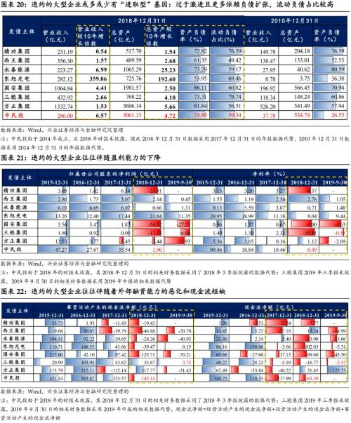 1)“进取型”企业需区分来看,过度激进、负债扩张往往会带来灾难。本文的案例或多或少都有着“进取型”基因;但“进取型”企业多有通病:过于激进、且更多依赖负债扩张、甚至“短贷长投”,无法迅速回笼资金。同时,违约的大型企业往往在债务高企的同时,伴随着自身盈利能力下滑和外部融资能力的下降,无法给企业带来充足的现金流支撑,最终被高企的债务负担和短缺的现金流所“压垮”。