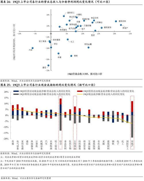 根据A股上市公司(剔除金融和中石油、中石化,按可比口径)各行业19年3季报的数据测算可知,汽车、通信、传媒等行业的盈利能力边际恶化明显;房地产、综合、公用事业等行业的筹资活动现金流净额/营业总收入的指标恶化显著,投资者需要保持谨慎。