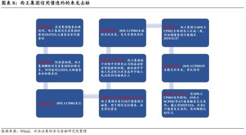 2019年10月24日,18西王CP001未按时兑付本息,发生实质性违约。截至目前,西王集团共有6只债券发生违约,涉及违约规模合计33亿元。