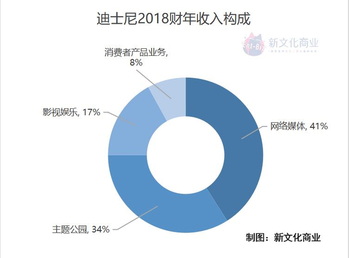 但票房收入并不是这家公司最主要的营收来源,从以往财报数据可知,包含票房收入的影视娱乐版块只占迪士尼营收的15%左右。