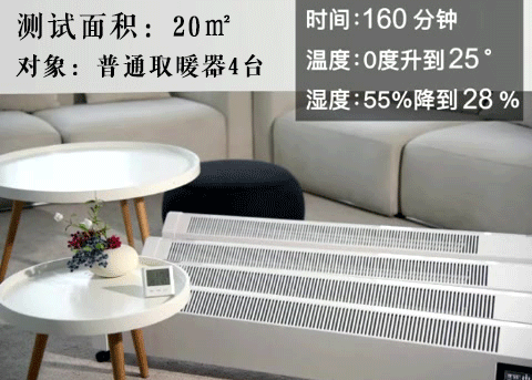 20 平的空置空间,10 分钟感觉到明显升温,20 分钟可以与室外形成较大的温差,而且不干燥很舒服。