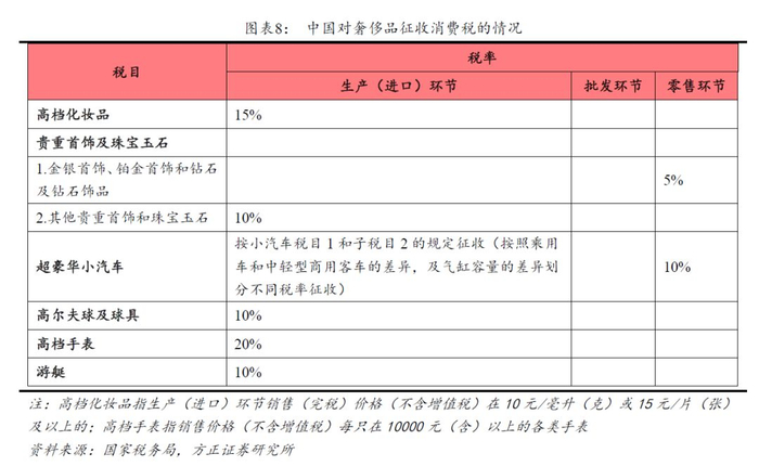 【方正社服】消费税研究笔记 ——对中国奢侈品征收消费税的思考