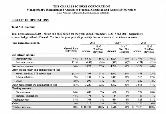 嘉信理财2018年财务数据显示,其佣金收入占比仅占总收入的7%。