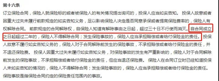 自合同成立之日起超过二年的,保险人不得解除合同;发生保险事故的,保险人应当承担赔偿或者给付保险金的责任。