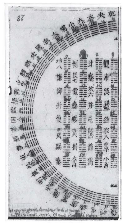 比较通行的同类图(坊间流行的,诸如《周易本义》里的伏羲六十四卦方位图 ),不难发觉图2a和图2b里多了一些阿拉伯数目字,是莱氏用墨水笔手写添加上去的,表明他在白晋的解释帮助下理解了易卦排序的规律,从而得出的各卦的二进制编号。从字体可以看出,莱布尼茨在添加这些数字时写得非常迅捷,可以说是不假思索一挥而就。也表明了白晋的信和附图导致了莱氏的“顿悟”,令他顿时就明白了,伏羲氏的易经智慧和他正在开创的二进制算法有异曲同工之妙,是二进制算法早了四千年的一个历史实证应用。事实上,莱布尼茨据以修订论文的工作在数日之内就告完工,随即提交法兰西皇家学院,激活了他被搁置了两年之久的二进制算法论文,同年八月得以顺利发表。从而开启了我们现今所处的伟大信息时代。
