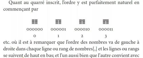 那么,我们是不是可以说,莱氏和白晋对其所做的这个妥协,以及对后人可能产生的误导,是一无所知的呢?不然。细读白晋和莱氏的那几封通信,可以看到两人对此问题是了解,并且深入讨论过的。不过当时他们的目的,不在于对易经的透彻理解和诠释,而是旨在推进二进制算法的完备和发表,因而没有展开进一步的辨析。