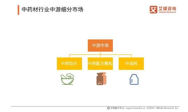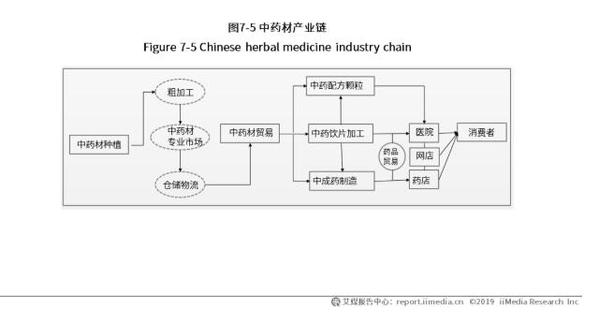 中药材主要包括上游种植、养殖市场,中游流通市场和下游销售市场三大环节。