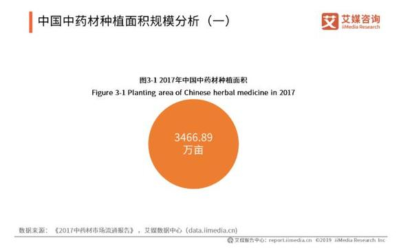 在巨大的需求驱动下,中药材种植面积扩大,药材产量将会持续增长。2017年中国中药材种植面积较上年增长3.5%,种植面积达到3466.89万亩(不含林地和野生药材),家种药材供应量持续增加。艾媒咨询分析师认为,随着农业供给侧结构性改革的推进,国家对中药材产业扶持力度不断增强,中药材种植面积大幅增长。