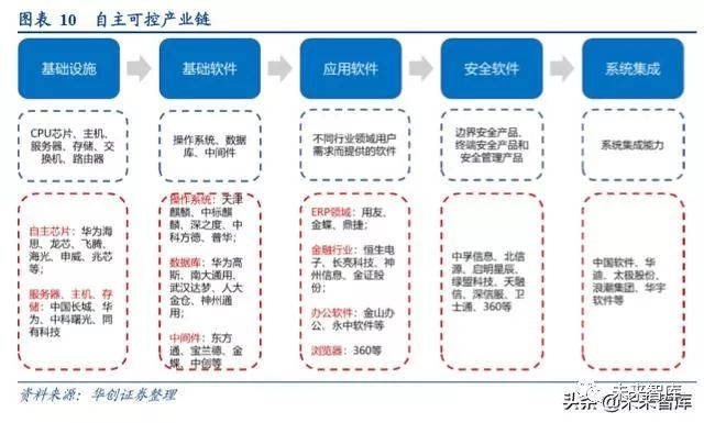 信息安全核心软硬件国产化带来自主可控的信息安全装备平台的巨大需求。信息安全已经上升到国家战略的高度, 未来国家将通过政府采购或政策扶持等方式实现基础软硬件和重要 IT 服务的国产化替代,国家也已经明确,涉及国 家信息安全产品必须采用国产芯片、软件,实现自主可控,因此,信息安全核心软硬件国产化带来自主可控的信息 安全装备平台的巨大需求。