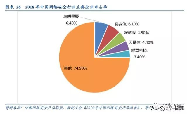 由于网络安全行业细分领域极为众多,每个细分领域又有数十家企业同时竞争,部分小企业凭借 1-2 款优势产品,也能在某些特定行业或者地区获得不错的发展,这是竞争格局分散的主要原因。