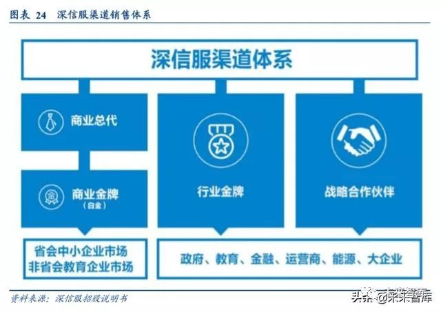 渠道建设成为安全厂商在增量市场中跑马圈地的主要方式。以华为、新华三及深信服、普迪科技为代表的安全厂商 已经建立了相对完善的渠道体系,在渠道能力提升、认证培训、技术支持和营销支持等方面形成了成熟经验。以深 信服为例,公司推行全面渠道化战略,截止 2017 年底公司代销收入占比超过 97%。