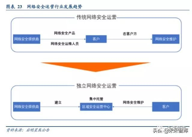 越来越多安全厂商以及云服务提供商都开始进行安全服务方面的战略布局,希望通过服务的方式提升企业级用户整 体的安全能力。例如,启明星辰大力推进城市安全运营中心建设,将政府和企事业单位的信息安全业务进行集中托 管,为客户提供有效的整体安全服务,通过专业的安全运维人员和专家分析团队为客户提供 7*24 小时的安全监测 和感知能力,并且在各个城市安全运营中心间建立横向沟通机制,在各个运营中心的系统层面建设威胁情报传递功 能,建立安全事件的快速应急响应体系,从而有效提高应对信息安全事件的防御能力,保障政府机构和企事业单位 的信息系统正常、持续运行。