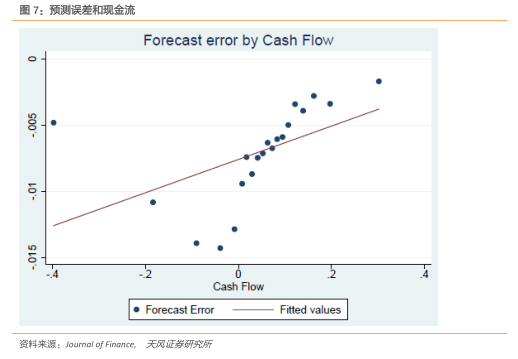 图7显示了预测误差与现金流量之间的正相关关系,这表明分析师在形成EPS预测时并未充分考虑以运营现金流量衡量的当期收益信息。