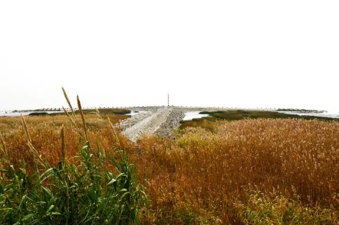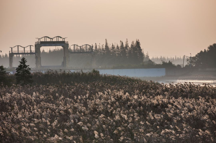 在崇西水闸的水道边的一片芦苇荡,“潮来一片白茫茫,潮去一片芦苇荡”,当年只是芦苇荡的小滩涂在如今优雅美丽又风情万种。而这样的芦花与日落更是相配。芦花在岸边摇曳生姿, 翻涌层叠,温柔却又倔强,迎着一片夕阳余晖,每一丝光线都被折射得璀璨明艳,这就是秋冬最独有的味道。