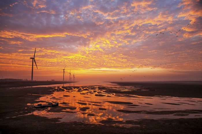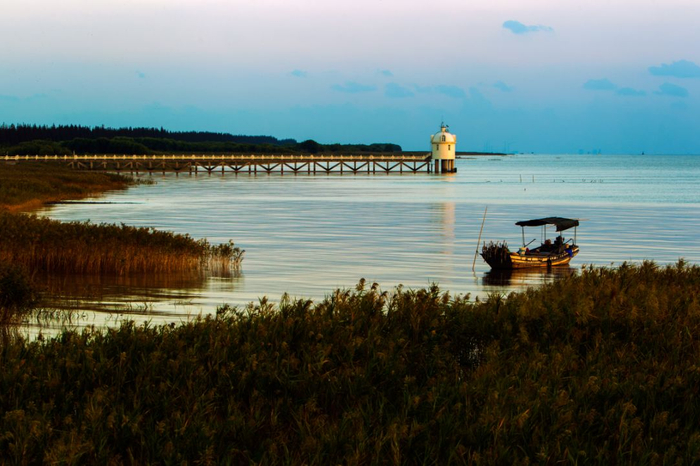 北湖的芦苇荡里,是属于冬日枯槁前的浪漫绚烂。一阵风来,远处的风车慢悠悠地转动,风儿也一波波地掠过芦苇,眼看着它们在风中伏低后又直起来,迎风摇曳中有一种质朴的野趣。北湖还有成片的湿地、滩涂、成为鱼虾和鸟儿的良好栖息地,夕阳西下,站在北湖边,任凭自己变成剪影,这样的静谧,无法言说。