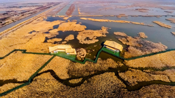 冬季的东滩湿地,少有鹅毛大雪,却常有芦花满天飘絮。婆娑着的芦花,或写意着淡青的轻柔,或曼妙着金黄的庄重,更多的,是挥洒成一片银色的花海,把苍茫、热烈、绚烂、蓬勃……远离都市的喧嚣,身临其境体验久违的乡野恬静和舒适。