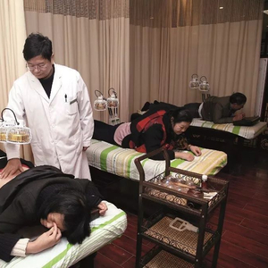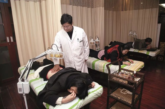 社区医生在老年公寓为老年人做推拿理疗。图/IC