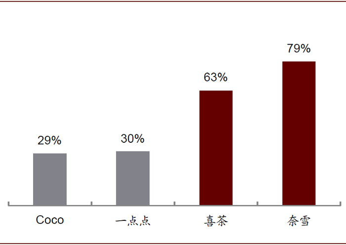 图表: 各茶饮品牌一线城市门店占比(2019.11)