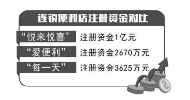 注册资金1亿元,这在连锁便利店中并不多见。相比之下,河南本土连锁便利店品牌悦来悦喜,注册资金为1亿元;爱便利注册资金为2670万元;在郑州开店比较多的每一天便利店,注册资金为3625万元。