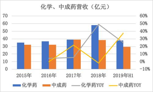 (1) 化学药过去三年的年复合增长率为17.89%,截止19年H1实现营收38亿元,同比增长29.61%。