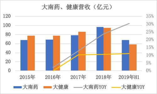 从近一两年来看,大健康及大南药业务成长性明显加快。