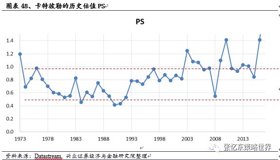 2.自1991年至2002年,伴随一系列改革成果和盈利反弹,卡特彼勒PS水平从0.4升至0.85倍,PB从1.3倍升至接近3倍。