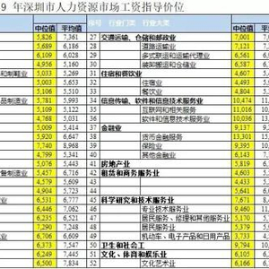 2019年,深圳市人力资源市场全行业平均月薪为7361元,中位值为5826元。在个人感受上,中位数比平均数更加真实。