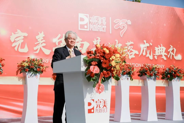 古润金表示,华南基地的落成是完美公司25年再出发的一个新起点。华南基地2011年开始投资建设,按照权威认证标准设计,同时引入了更多的智能化管理。从一块荒凉的平地到今天一步一步成为现实,都是为了更加扎实公司的发展基础,让公司在未来走得更长久、走得更长远,走向百年、走向全球。