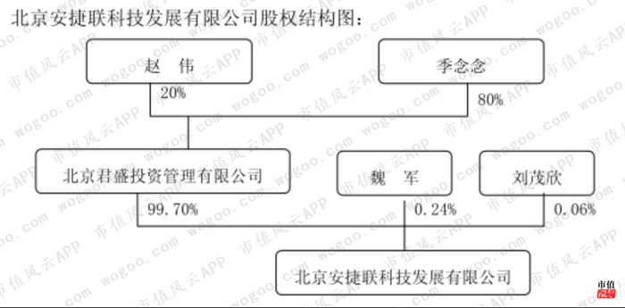 安捷联成立于2001年9月14日,法定代表人是魏军,而北京君盛投资管理有限公司(以下简称“北京君盛投资”)持有安捷联99%股权。