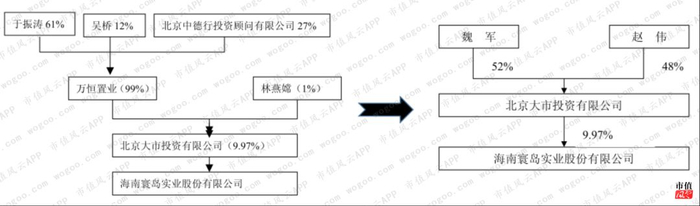 2008年3月26日,上文提到的魏军、赵伟两人分别以3060万元、2880万元受让北京大市52%、48%的股权,交易完成后,北京大市的控股股东由万恒置业变更为魏军、赵伟两人,继续通过大市投资持有上市公司9.97%股权。