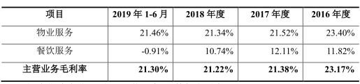 新大正毛利率水平下滑,报告期内,新大正主营业务毛利率分别为23.17%、21.38%、21.22%、21.30%,公司主营业务毛利率的变动主要是由于物业服务毛利率变动所致,物业服务毛利率分别为23.40%、21.52%、21.34%、21.46%。
